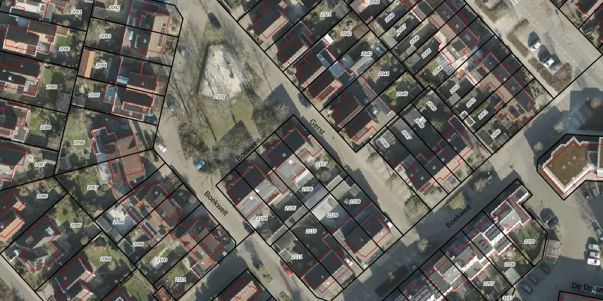 Boekweit 13 is gelegen op kadastraal perceel BNE00B2107. Deze kadastrale aanduiding is uniek en wordt gebruikt door het Kadaster om eigendomsrechten en andere zakelijke rechten vast te leggen. Het perceel maakt onderdeel uit van de kadastrale gemeente Borne.