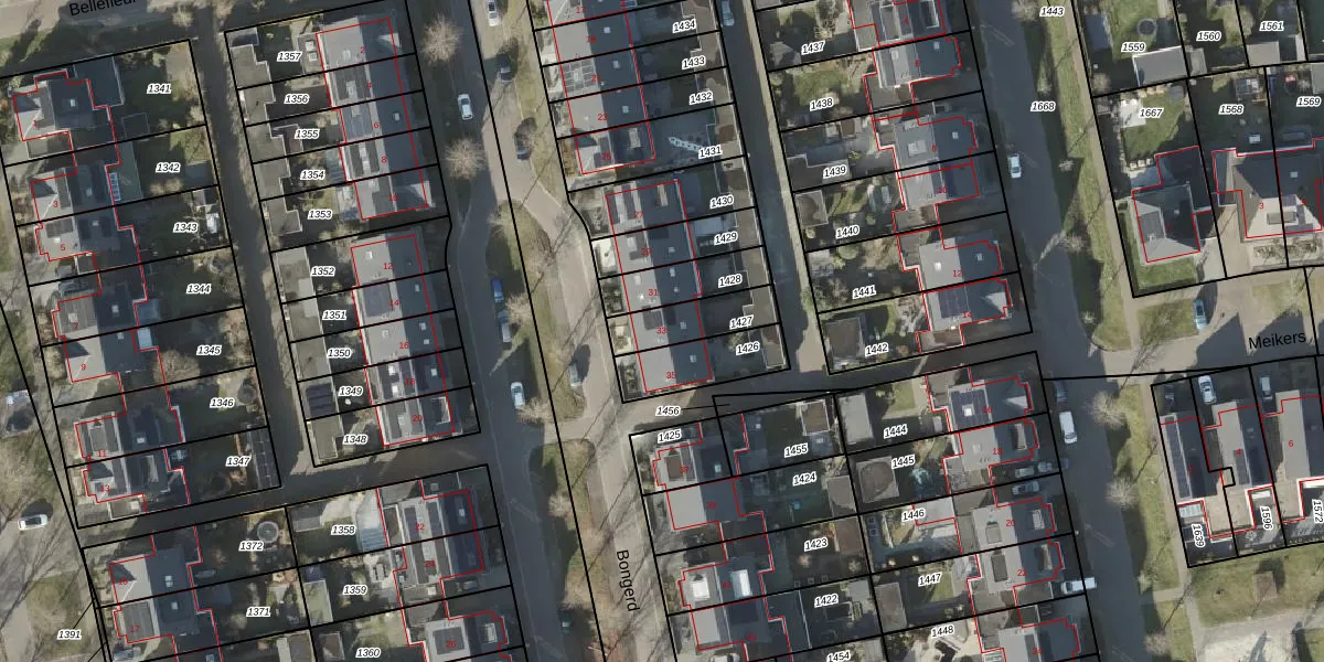 Het perceel waarop Bongerd 33 staat heeft een oppervlakte van 154 m². Dit is een middelgroot perceel. De perceeloppervlakte wordt geregistreerd door het Kadaster. Gedetailleerde informatie over de maten van dit perceel kunt u vinden in het rapport Kadastrale kaart met maatvoering van Bongerd 33.