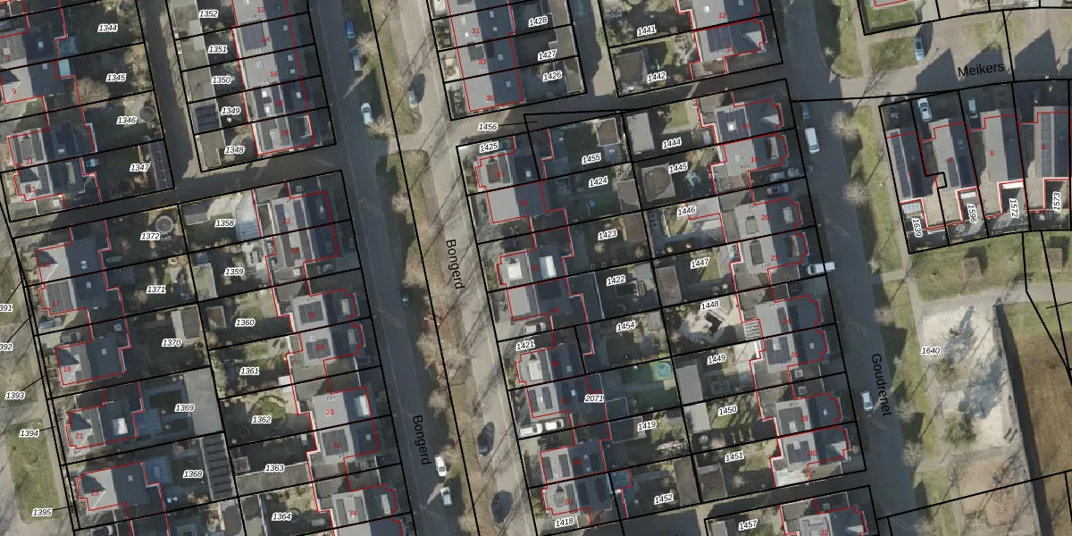 Het perceel waarop Bongerd 41 staat heeft een oppervlakte van 291 m². Dit is een middelgroot perceel. De perceeloppervlakte wordt geregistreerd door het Kadaster. Gedetailleerde informatie over de maten van dit perceel kunt u vinden in het rapport Kadastrale kaart met maatvoering van Bongerd 41.