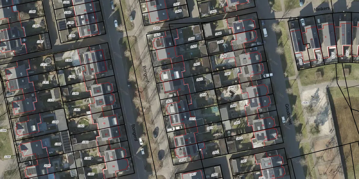 Het perceel waarop Bongerd 43 staat heeft een oppervlakte van 291 m². Dit is een middelgroot perceel. De perceeloppervlakte wordt geregistreerd door het Kadaster. Gedetailleerde informatie over de maten van dit perceel kunt u vinden in het rapport Kadastrale kaart met maatvoering van Bongerd 43.