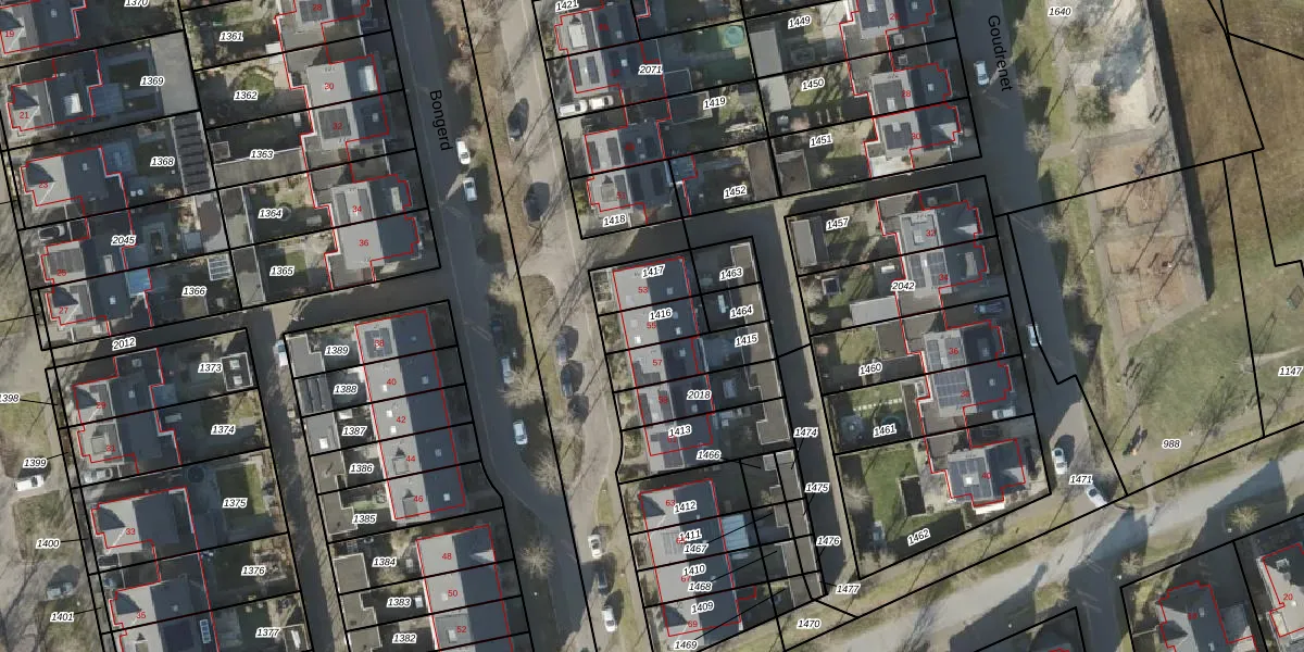 Het perceel waarop Bongerd 55 staat heeft een oppervlakte van 98 m². Dit is een klein perceel. De perceeloppervlakte wordt geregistreerd door het Kadaster. Gedetailleerde informatie over de maten van dit perceel kunt u vinden in het rapport Kadastrale kaart met maatvoering van Bongerd 55.