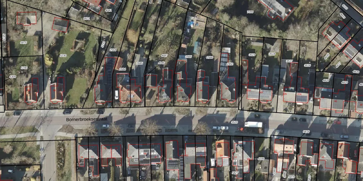 Gebruik de zoekbalk of klik op een perceel voor informatie over de adressen binnen dit perceel.