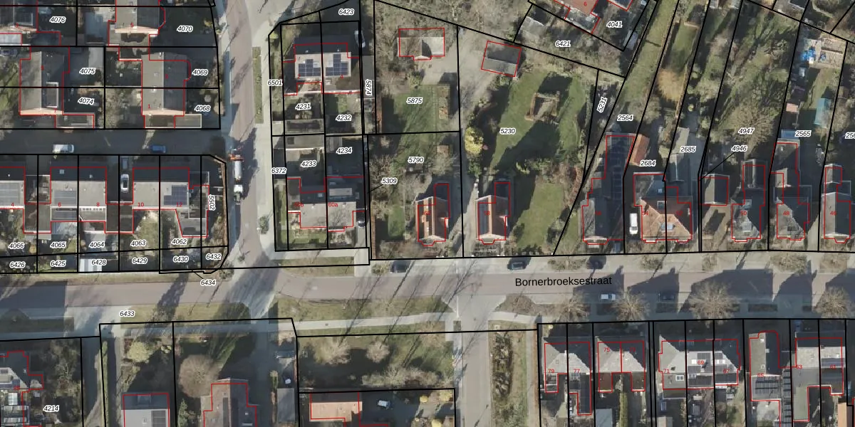 Het perceel waarop Bornerbroeksestraat 60 staat heeft een oppervlakte van 635 m². Dit is een groot perceel. De perceeloppervlakte wordt geregistreerd door het Kadaster. Gedetailleerde informatie over de maten van dit perceel kunt u vinden in het rapport Kadastrale kaart met maatvoering van Bornerbroeksestraat 60.