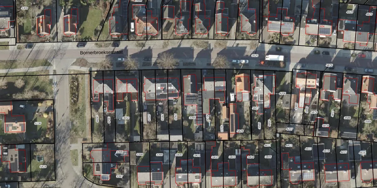 Gebruik de zoekbalk of klik op een perceel voor informatie over de adressen binnen dit perceel.