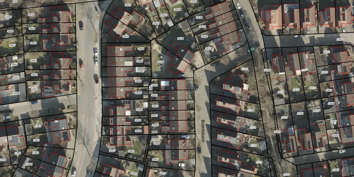Gebruik de zoekbalk of klik op een perceel voor informatie over de adressen binnen dit perceel.