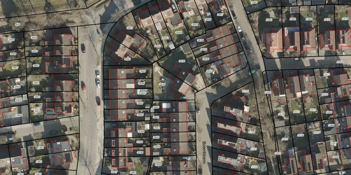 Het perceel waarop Boterbloem 21 staat heeft een oppervlakte van 349 m². Dit is een groot perceel. De perceeloppervlakte wordt geregistreerd door het Kadaster. Gedetailleerde informatie over de maten van dit perceel kunt u vinden in het rapport Kadastrale kaart met maatvoering van Boterbloem 21.