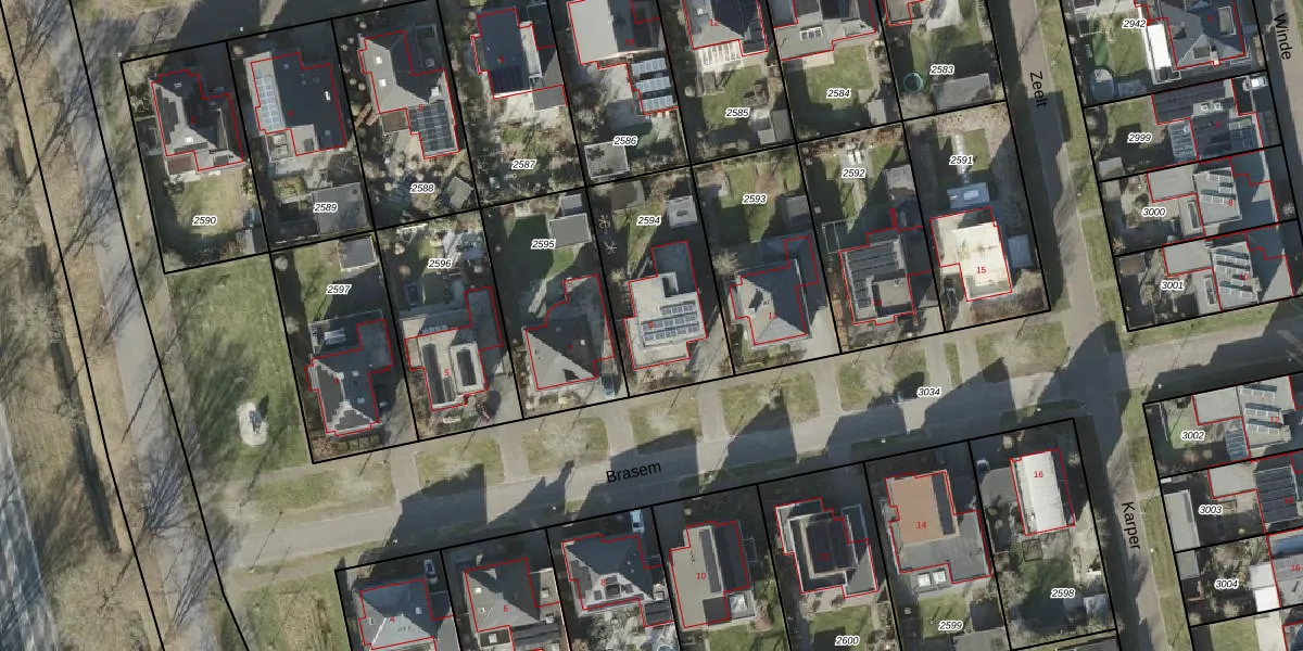 Het perceel waarop Brasem 9 staat heeft een oppervlakte van 545 m². Dit is een groot perceel. De perceeloppervlakte wordt geregistreerd door het Kadaster. Gedetailleerde informatie over de maten van dit perceel kunt u vinden in het rapport Kadastrale kaart met maatvoering van Brasem 9.
