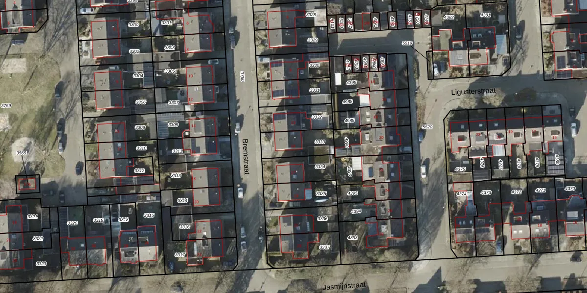 Het perceel waarop Bremstraat 15 staat heeft een oppervlakte van 219 m². Dit is een middelgroot perceel. De perceeloppervlakte wordt geregistreerd door het Kadaster. Gedetailleerde informatie over de maten van dit perceel kunt u vinden in het rapport Kadastrale kaart met maatvoering van Bremstraat 15.