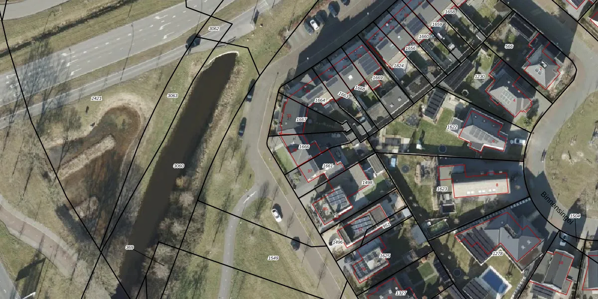 Het adres is gelegen op perceel 1666 in de sectie L en de kadastrale gemeente Borne. De kadastrale aanduiding is aldus BNE00-L-1666. Het perceel is kleiner dan gemiddeld in Borne. Het perceel is 228 m² groot, terwijl het gemiddelde ligt op 1967,85 m². De grootste perceeloppervlakte in de kadastrale gemeente is 25,0 ha. De kleinste oppervlakte bedraagt 0 m². Er zijn geen andere adressen aanwezig op het perceel. De huidige grenzen van het perceel zijn digitaal in de Basisregistratie Kadaster (BRK) geregistreerd op 04-03-2020.