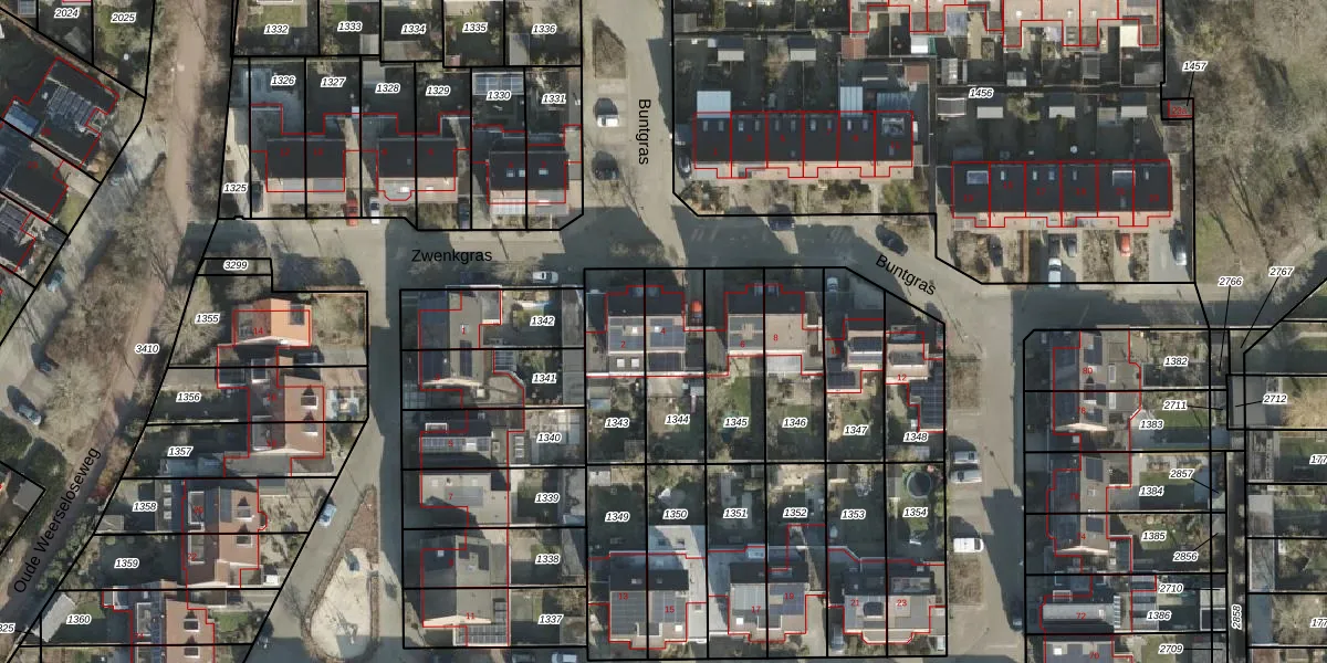 Gebruik de zoekbalk of klik op een perceel voor informatie over de adressen binnen dit perceel.