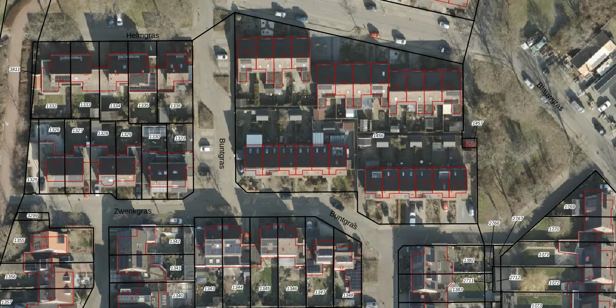 Het perceel waarop Buntgras 7 staat heeft een oppervlakte van 4143 m². Dit is een zeer groot perceel. De perceeloppervlakte wordt geregistreerd door het Kadaster. Gedetailleerde informatie over de maten van dit perceel kunt u vinden in het rapport Kadastrale kaart met maatvoering van Buntgras 7.
