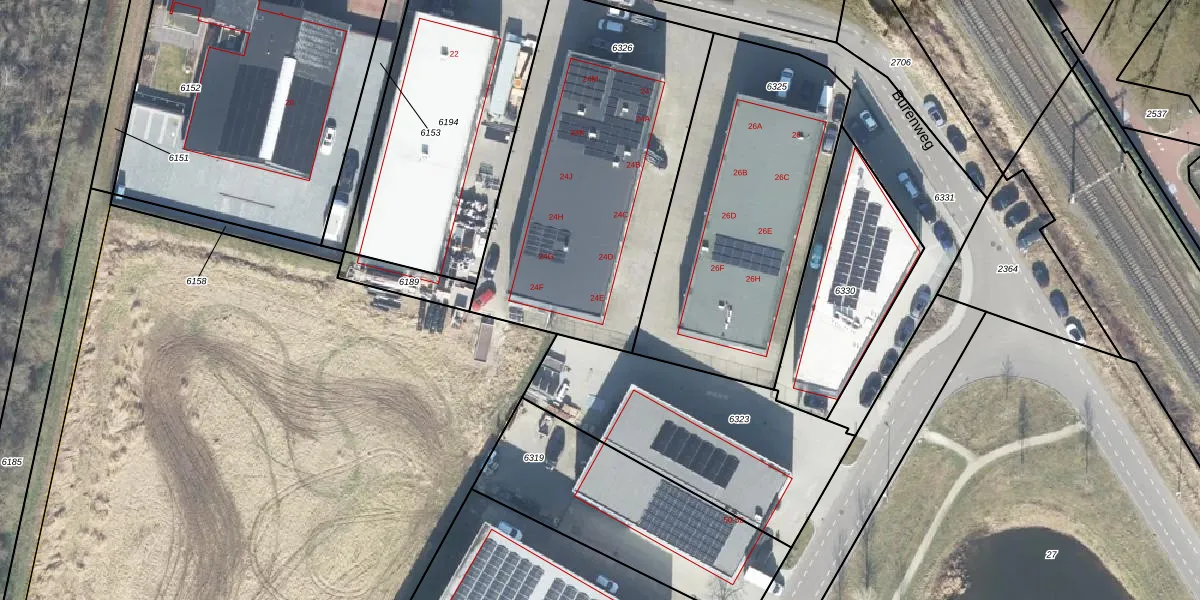 Burenweg 24-e is gelegen op kadastraal perceel BNE00D6326. Deze kadastrale aanduiding is uniek en wordt gebruikt door het Kadaster om eigendomsrechten en andere zakelijke rechten vast te leggen. Het perceel maakt onderdeel uit van de kadastrale gemeente Borne.