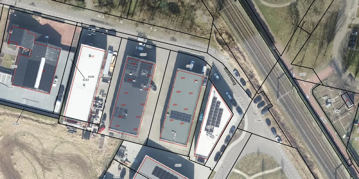 Burenweg 26-b is gelegen op kadastraal perceel BNE00D6325. Deze kadastrale aanduiding is uniek en wordt gebruikt door het Kadaster om eigendomsrechten en andere zakelijke rechten vast te leggen. Het perceel maakt onderdeel uit van de kadastrale gemeente Borne.