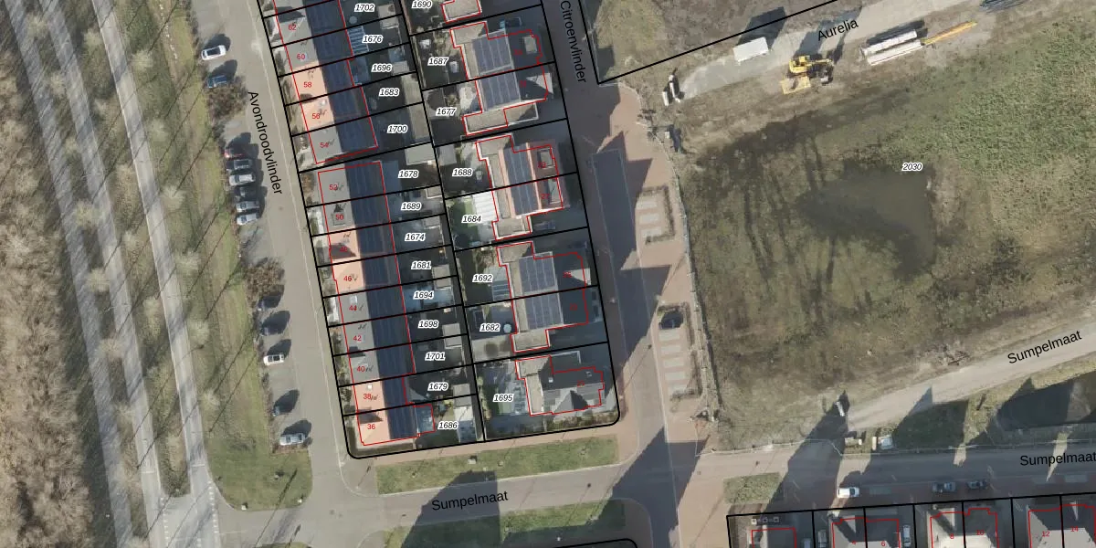 Gebruik de zoekbalk of klik op een perceel voor informatie over de adressen binnen dit perceel.