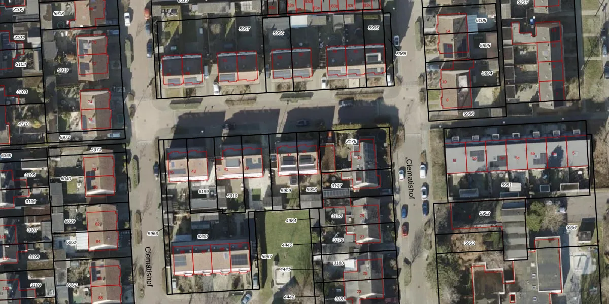 Het perceel waarop Clematishof 35 staat heeft een oppervlakte van 189 m². Dit is een middelgroot perceel. De perceeloppervlakte wordt geregistreerd door het Kadaster. Gedetailleerde informatie over de maten van dit perceel kunt u vinden in het rapport Kadastrale kaart met maatvoering van Clematishof 35.