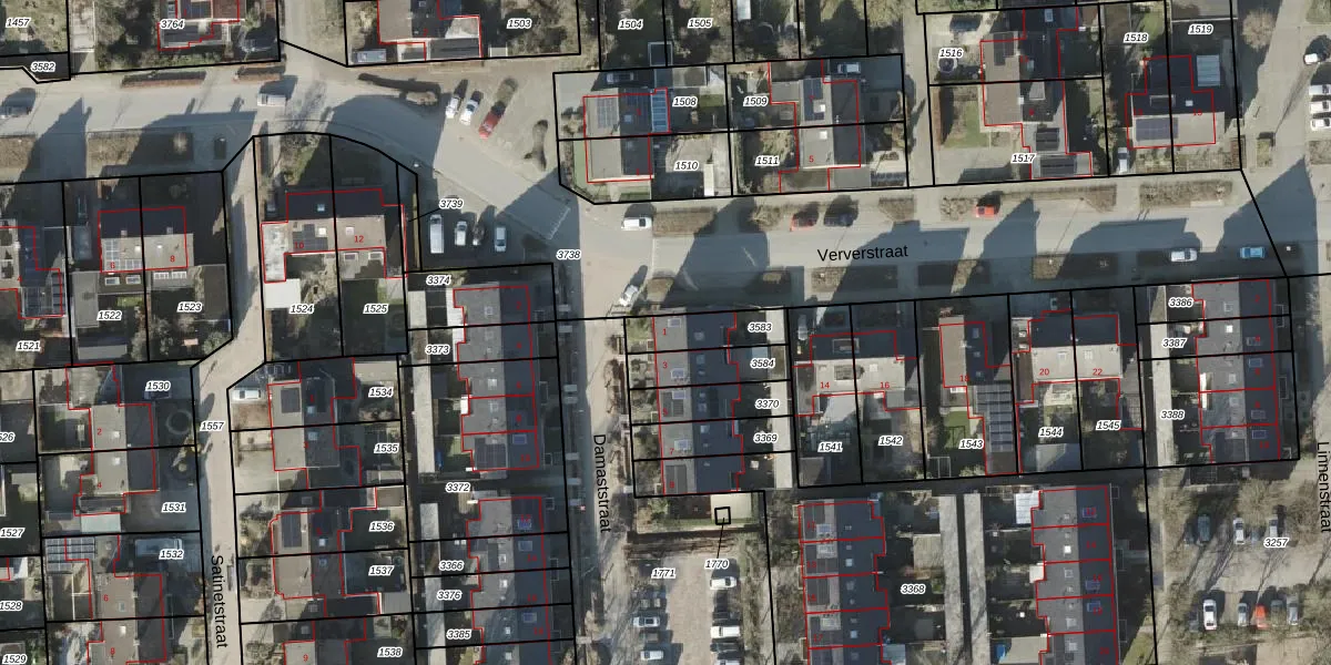 Het perceel waarop Damaststraat 1 staat heeft een oppervlakte van 133 m². Dit is een middelgroot perceel. De perceeloppervlakte wordt geregistreerd door het Kadaster. Gedetailleerde informatie over de maten van dit perceel kunt u vinden in het rapport Kadastrale kaart met maatvoering van Damaststraat 1.