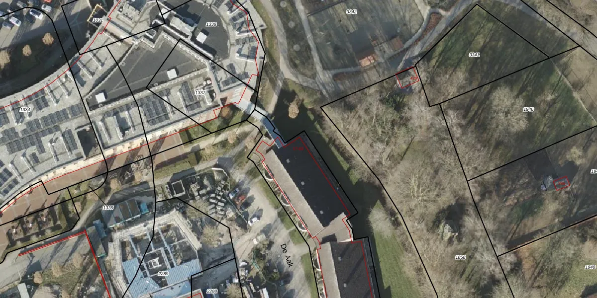 Het perceel waarop De Aak 17 staat heeft een oppervlakte van 2392 m². Dit is een zeer groot perceel. De perceeloppervlakte wordt geregistreerd door het Kadaster. Gedetailleerde informatie over de maten van dit perceel kunt u vinden in het rapport Kadastrale kaart met maatvoering van De Aak 17.