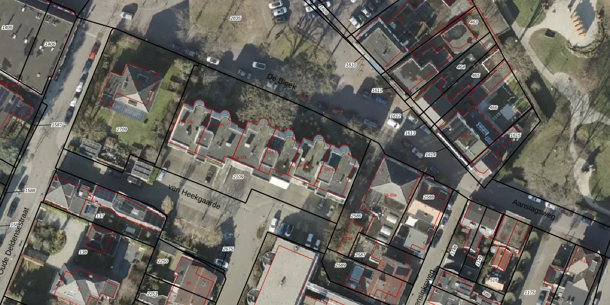 Het perceel waarop De Bleek 18-a staat heeft een oppervlakte van 2110 m². Dit is een zeer groot perceel. De perceeloppervlakte wordt geregistreerd door het Kadaster. Gedetailleerde informatie over de maten van dit perceel kunt u vinden in het rapport Kadastrale kaart met maatvoering van De Bleek 18-a.