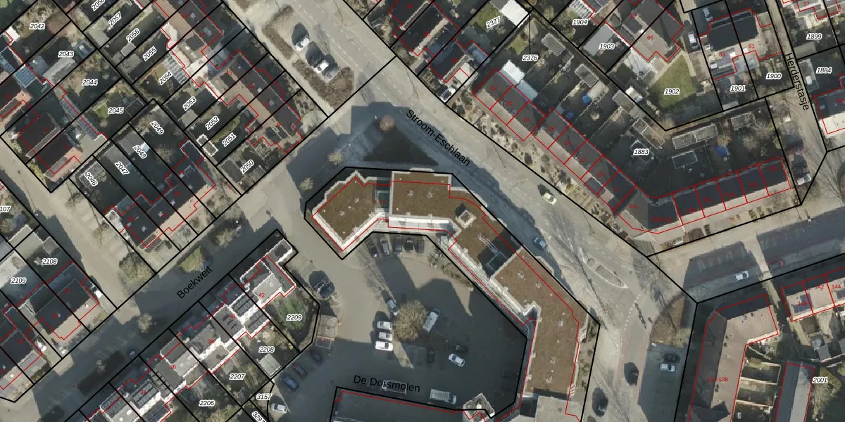 Het perceel waarop De Dorsmolen 13 staat heeft een oppervlakte van 2977 m². Dit is een zeer groot perceel. De perceeloppervlakte wordt geregistreerd door het Kadaster. Gedetailleerde informatie over de maten van dit perceel kunt u vinden in het rapport Kadastrale kaart met maatvoering van De Dorsmolen 13.