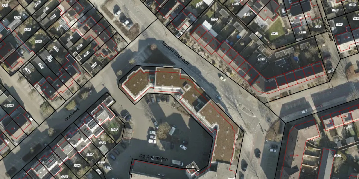 Het perceel waarop De Dorsmolen 16 staat heeft een oppervlakte van 2977 m². Dit is een zeer groot perceel. De perceeloppervlakte wordt geregistreerd door het Kadaster. Gedetailleerde informatie over de maten van dit perceel kunt u vinden in het rapport Kadastrale kaart met maatvoering van De Dorsmolen 16.