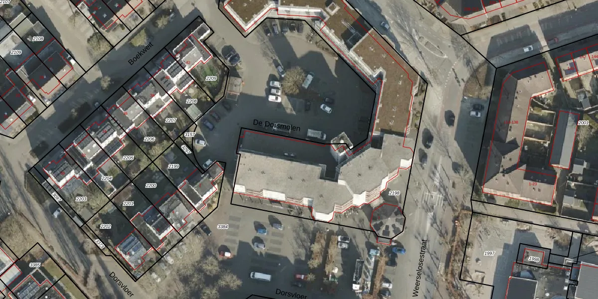Het perceel waarop De Dorsmolen 44 staat heeft een oppervlakte van 2977 m². Dit is een zeer groot perceel. De perceeloppervlakte wordt geregistreerd door het Kadaster. Gedetailleerde informatie over de maten van dit perceel kunt u vinden in het rapport Kadastrale kaart met maatvoering van De Dorsmolen 44.