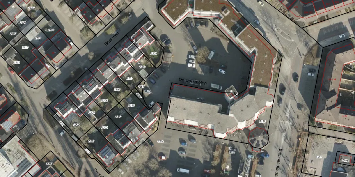 Het perceel waarop De Dorsmolen 50 staat heeft een oppervlakte van 2977 m². Dit is een zeer groot perceel. De perceeloppervlakte wordt geregistreerd door het Kadaster. Gedetailleerde informatie over de maten van dit perceel kunt u vinden in het rapport Kadastrale kaart met maatvoering van De Dorsmolen 50.