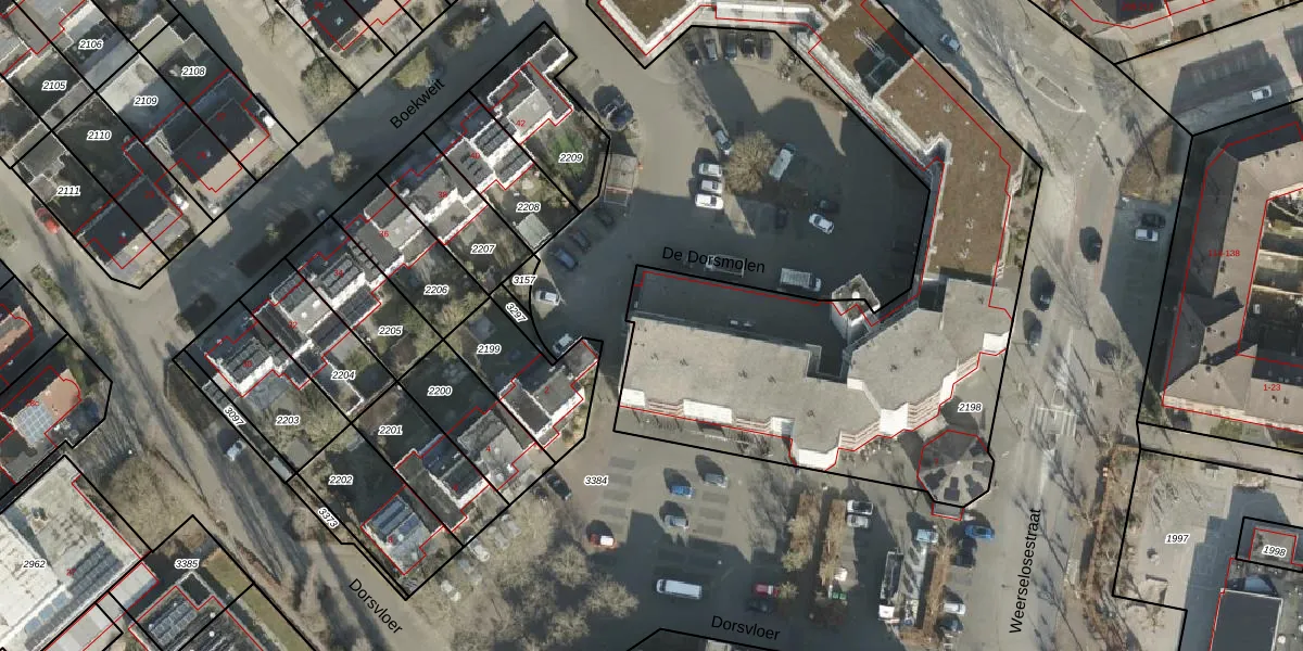 Het perceel waarop De Dorsmolen 52 staat heeft een oppervlakte van 2977 m². Dit is een zeer groot perceel. De perceeloppervlakte wordt geregistreerd door het Kadaster. Gedetailleerde informatie over de maten van dit perceel kunt u vinden in het rapport Kadastrale kaart met maatvoering van De Dorsmolen 52.