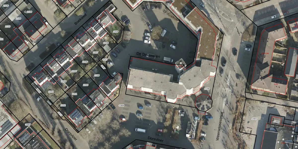 Het perceel waarop De Dorsmolen 55 staat heeft een oppervlakte van 2977 m². Dit is een zeer groot perceel. De perceeloppervlakte wordt geregistreerd door het Kadaster. Gedetailleerde informatie over de maten van dit perceel kunt u vinden in het rapport Kadastrale kaart met maatvoering van De Dorsmolen 55.