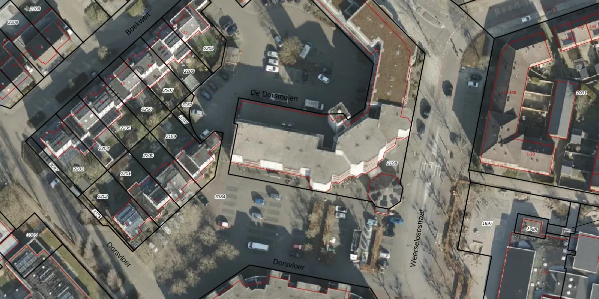 Het perceel waarop De Dorsmolen 61 staat heeft een oppervlakte van 2977 m². Dit is een zeer groot perceel. De perceeloppervlakte wordt geregistreerd door het Kadaster. Gedetailleerde informatie over de maten van dit perceel kunt u vinden in het rapport Kadastrale kaart met maatvoering van De Dorsmolen 61.