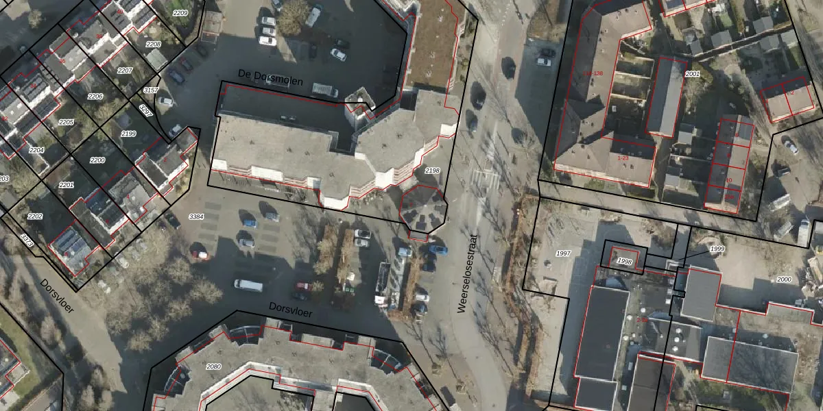 Het perceel waarop De Dorsmolen 7 staat heeft een oppervlakte van 2977 m². Dit is een zeer groot perceel. De perceeloppervlakte wordt geregistreerd door het Kadaster. Gedetailleerde informatie over de maten van dit perceel kunt u vinden in het rapport Kadastrale kaart met maatvoering van De Dorsmolen 7.