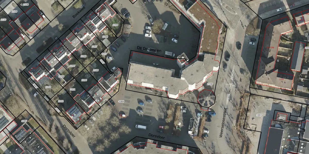 Het perceel waarop De Dorsmolen 70 staat heeft een oppervlakte van 2977 m². Dit is een zeer groot perceel. De perceeloppervlakte wordt geregistreerd door het Kadaster. Gedetailleerde informatie over de maten van dit perceel kunt u vinden in het rapport Kadastrale kaart met maatvoering van De Dorsmolen 70.