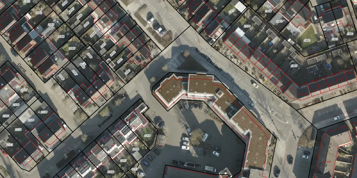 Het perceel waarop De Dorsmolen 8-a staat heeft een oppervlakte van 2977 m². Dit is een zeer groot perceel. De perceeloppervlakte wordt geregistreerd door het Kadaster. Gedetailleerde informatie over de maten van dit perceel kunt u vinden in het rapport Kadastrale kaart met maatvoering van De Dorsmolen 8-a.