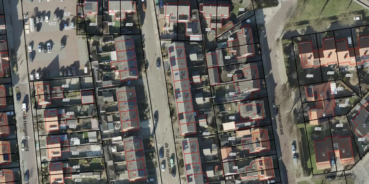 Het perceel waarop de Ruyterstraat 10 staat heeft een oppervlakte van 2746 m². Dit is een zeer groot perceel. De perceeloppervlakte wordt geregistreerd door het Kadaster. Gedetailleerde informatie over de maten van dit perceel kunt u vinden in het rapport Kadastrale kaart met maatvoering van de Ruyterstraat 10.