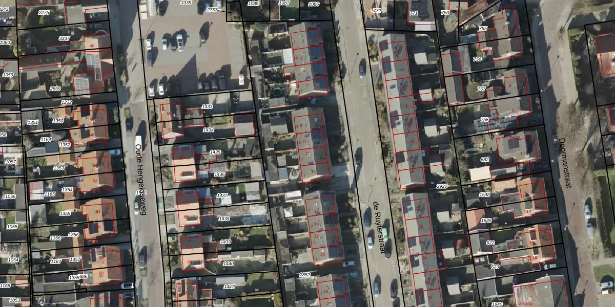 Het perceel waarop de Ruyterstraat 13 staat heeft een oppervlakte van 3401 m². Dit is een zeer groot perceel. De perceeloppervlakte wordt geregistreerd door het Kadaster. Gedetailleerde informatie over de maten van dit perceel kunt u vinden in het rapport Kadastrale kaart met maatvoering van de Ruyterstraat 13.