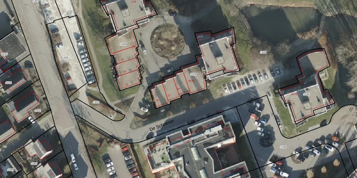 Het perceel waarop De Schoener 28 staat heeft een oppervlakte van 953 m². Dit is een groot perceel. De perceeloppervlakte wordt geregistreerd door het Kadaster. Gedetailleerde informatie over de maten van dit perceel kunt u vinden in het rapport Kadastrale kaart met maatvoering van De Schoener 28.