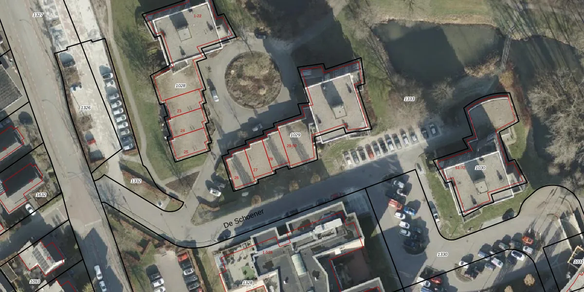 Het perceel waarop De Schoener 29 staat heeft een oppervlakte van 953 m². Dit is een groot perceel. De perceeloppervlakte wordt geregistreerd door het Kadaster. Gedetailleerde informatie over de maten van dit perceel kunt u vinden in het rapport Kadastrale kaart met maatvoering van De Schoener 29.