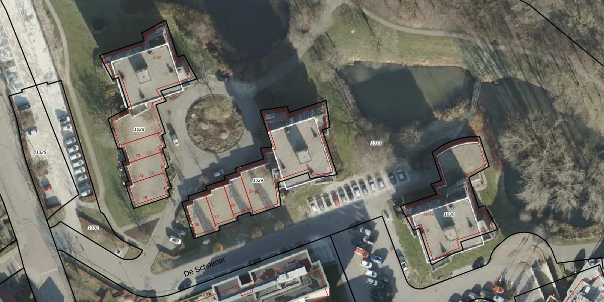 Het perceel waarop De Schoener 40 staat heeft een oppervlakte van 953 m². Dit is een groot perceel. De perceeloppervlakte wordt geregistreerd door het Kadaster. Gedetailleerde informatie over de maten van dit perceel kunt u vinden in het rapport Kadastrale kaart met maatvoering van De Schoener 40.