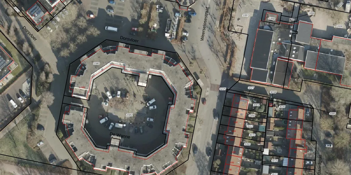 Het perceel waarop De Wanne 40 staat heeft een oppervlakte van 3293 m². Dit is een zeer groot perceel. De perceeloppervlakte wordt geregistreerd door het Kadaster. Gedetailleerde informatie over de maten van dit perceel kunt u vinden in het rapport Kadastrale kaart met maatvoering van De Wanne 40.