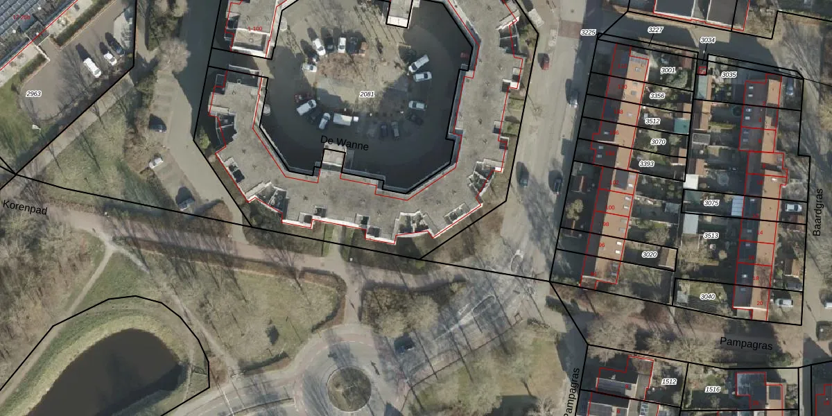 Het perceel waarop De Wanne 47 staat heeft een oppervlakte van 3293 m². Dit is een zeer groot perceel. De perceeloppervlakte wordt geregistreerd door het Kadaster. Gedetailleerde informatie over de maten van dit perceel kunt u vinden in het rapport Kadastrale kaart met maatvoering van De Wanne 47.