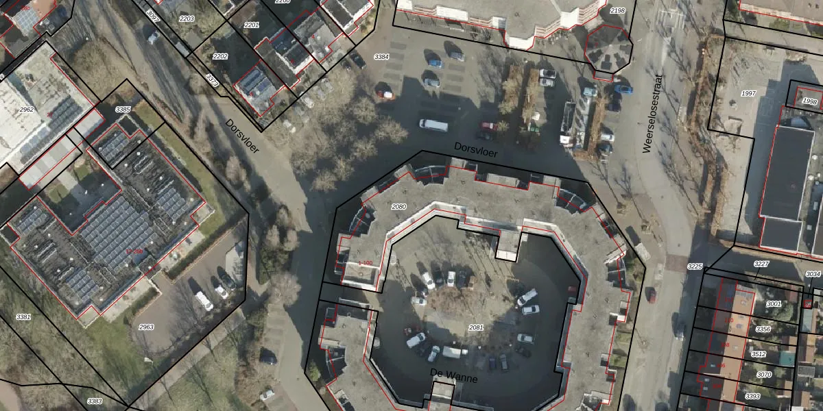 Het perceel waarop De Wanne 58 staat heeft een oppervlakte van 3293 m². Dit is een zeer groot perceel. De perceeloppervlakte wordt geregistreerd door het Kadaster. Gedetailleerde informatie over de maten van dit perceel kunt u vinden in het rapport Kadastrale kaart met maatvoering van De Wanne 58.