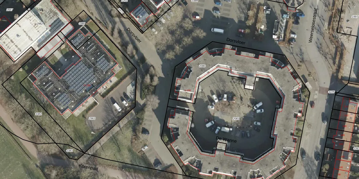 Het perceel waarop De Wanne 79 staat heeft een oppervlakte van 3293 m². Dit is een zeer groot perceel. De perceeloppervlakte wordt geregistreerd door het Kadaster. Gedetailleerde informatie over de maten van dit perceel kunt u vinden in het rapport Kadastrale kaart met maatvoering van De Wanne 79.