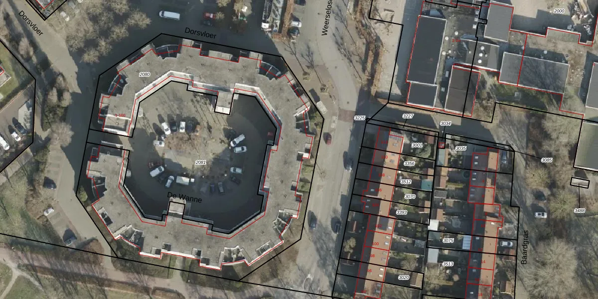 Het perceel waarop De Wanne 89 staat heeft een oppervlakte van 3293 m². Dit is een zeer groot perceel. De perceeloppervlakte wordt geregistreerd door het Kadaster. Gedetailleerde informatie over de maten van dit perceel kunt u vinden in het rapport Kadastrale kaart met maatvoering van De Wanne 89.