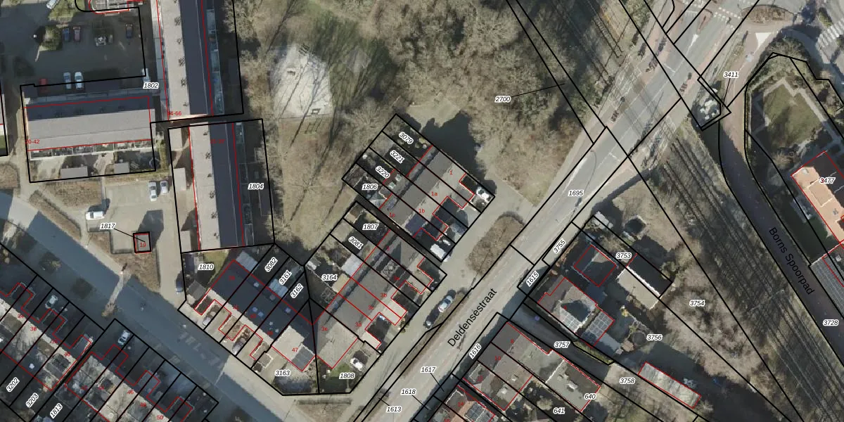 Deldensestraat 1-b is gelegen op kadastraal perceel BNE00K3220. Deze kadastrale aanduiding is uniek en wordt gebruikt door het Kadaster om eigendomsrechten en andere zakelijke rechten vast te leggen. Het perceel maakt onderdeel uit van de kadastrale gemeente Borne.