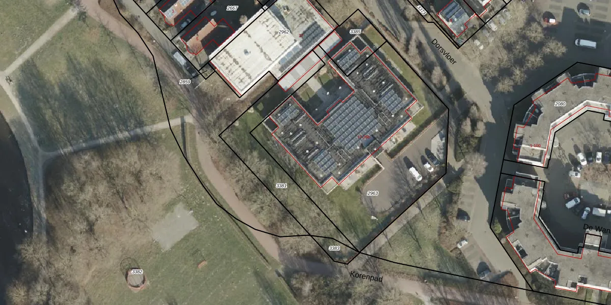 Het perceel waarop Dorsvloer 23 staat heeft een oppervlakte van 2600 m². Dit is een zeer groot perceel. De perceeloppervlakte wordt geregistreerd door het Kadaster. Gedetailleerde informatie over de maten van dit perceel kunt u vinden in het rapport Kadastrale kaart met maatvoering van Dorsvloer 23.