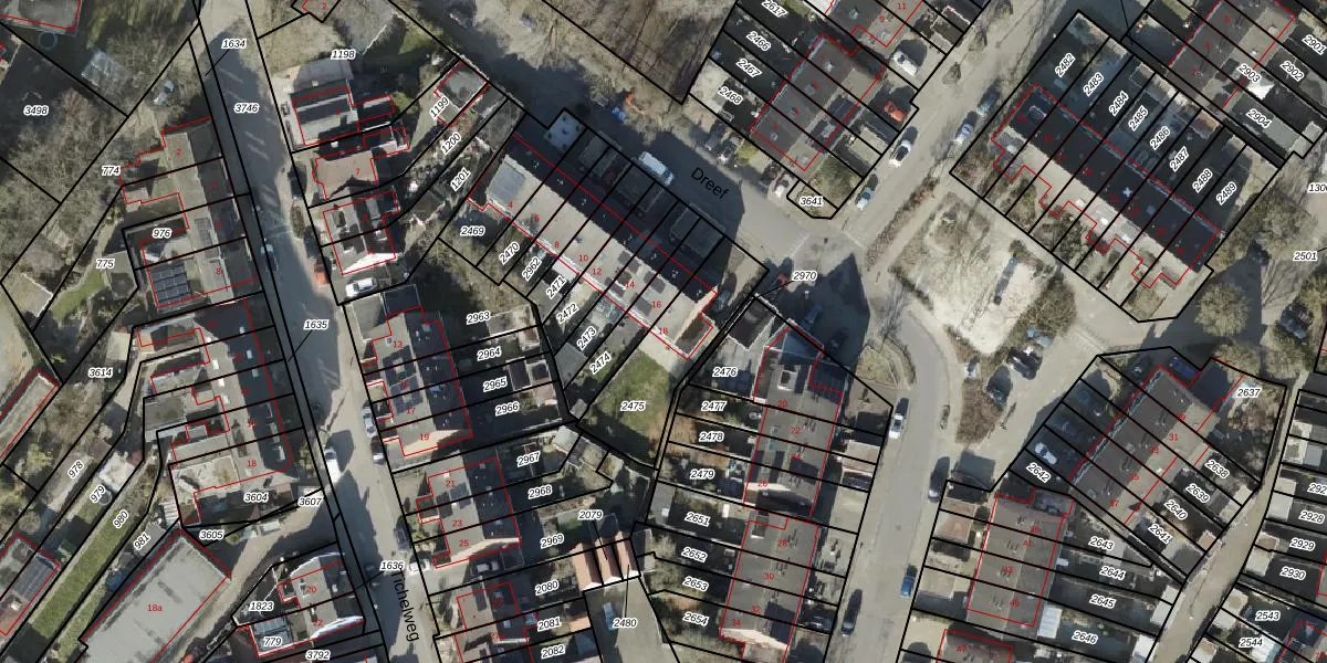 Gebruik de zoekbalk of klik op een perceel voor informatie over de adressen binnen dit perceel.