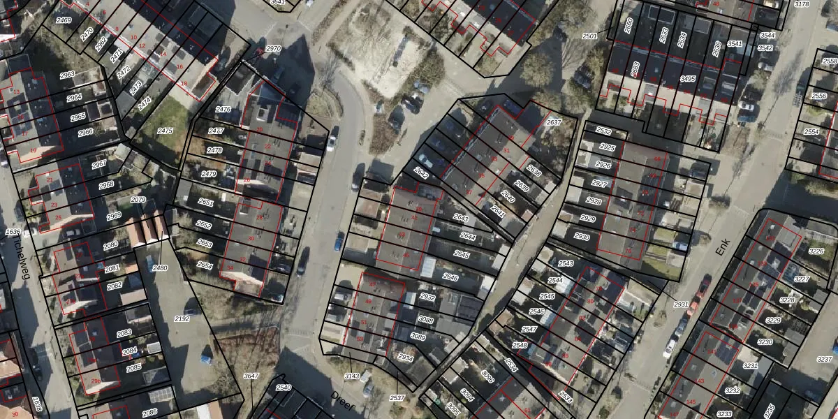 Het perceel waarop Dreef 39 staat heeft een oppervlakte van 179 m². Dit is een middelgroot perceel. De perceeloppervlakte wordt geregistreerd door het Kadaster. Gedetailleerde informatie over de maten van dit perceel kunt u vinden in het rapport Kadastrale kaart met maatvoering van Dreef 39.
