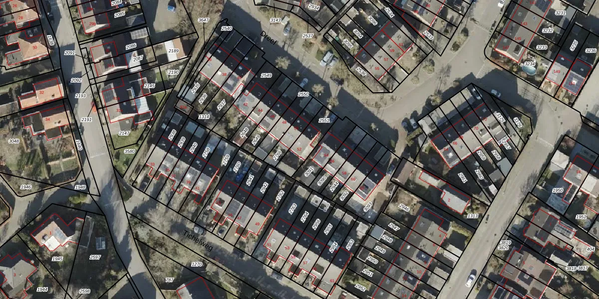 Gebruik de zoekbalk of klik op een perceel voor informatie over de adressen binnen dit perceel.