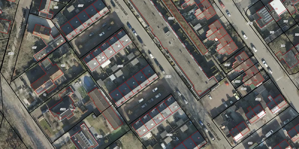 Duivenstraat 19 is gelegen op kadastraal perceel BNE00H1310. Deze kadastrale aanduiding is uniek en wordt gebruikt door het Kadaster om eigendomsrechten en andere zakelijke rechten vast te leggen. Het perceel maakt onderdeel uit van de kadastrale gemeente Borne.