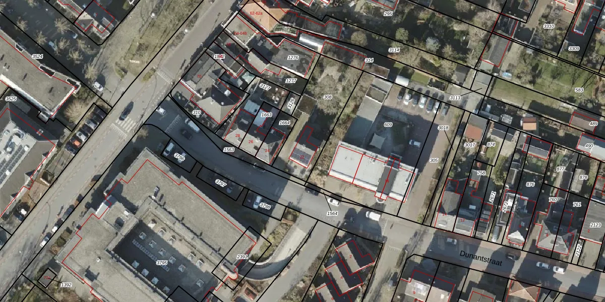 Het perceel waarop Dunantstraat 22 staat heeft een oppervlakte van 556 m². Dit is een groot perceel. De perceeloppervlakte wordt geregistreerd door het Kadaster. Gedetailleerde informatie over de maten van dit perceel kunt u vinden in het rapport Kadastrale kaart met maatvoering van Dunantstraat 22.