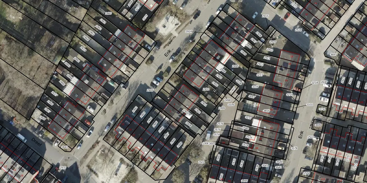 Het perceel waarop Enk 8 staat heeft een oppervlakte van 202 m². Dit is een middelgroot perceel. De perceeloppervlakte wordt geregistreerd door het Kadaster. Gedetailleerde informatie over de maten van dit perceel kunt u vinden in het rapport Kadastrale kaart met maatvoering van Enk 8.